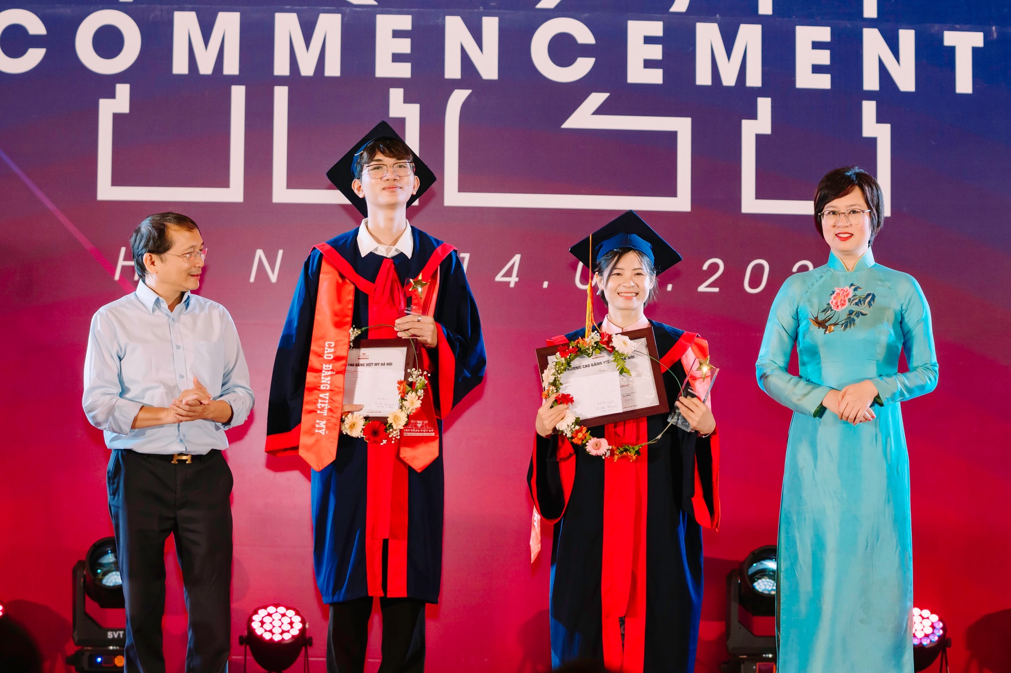 Đinh Thị Quỳnh và Trần Mã Lai là hai tân cử nhân K21 có thành tích xuất sắc nhất Cao đẳng Việt Mỹ Hà Nội