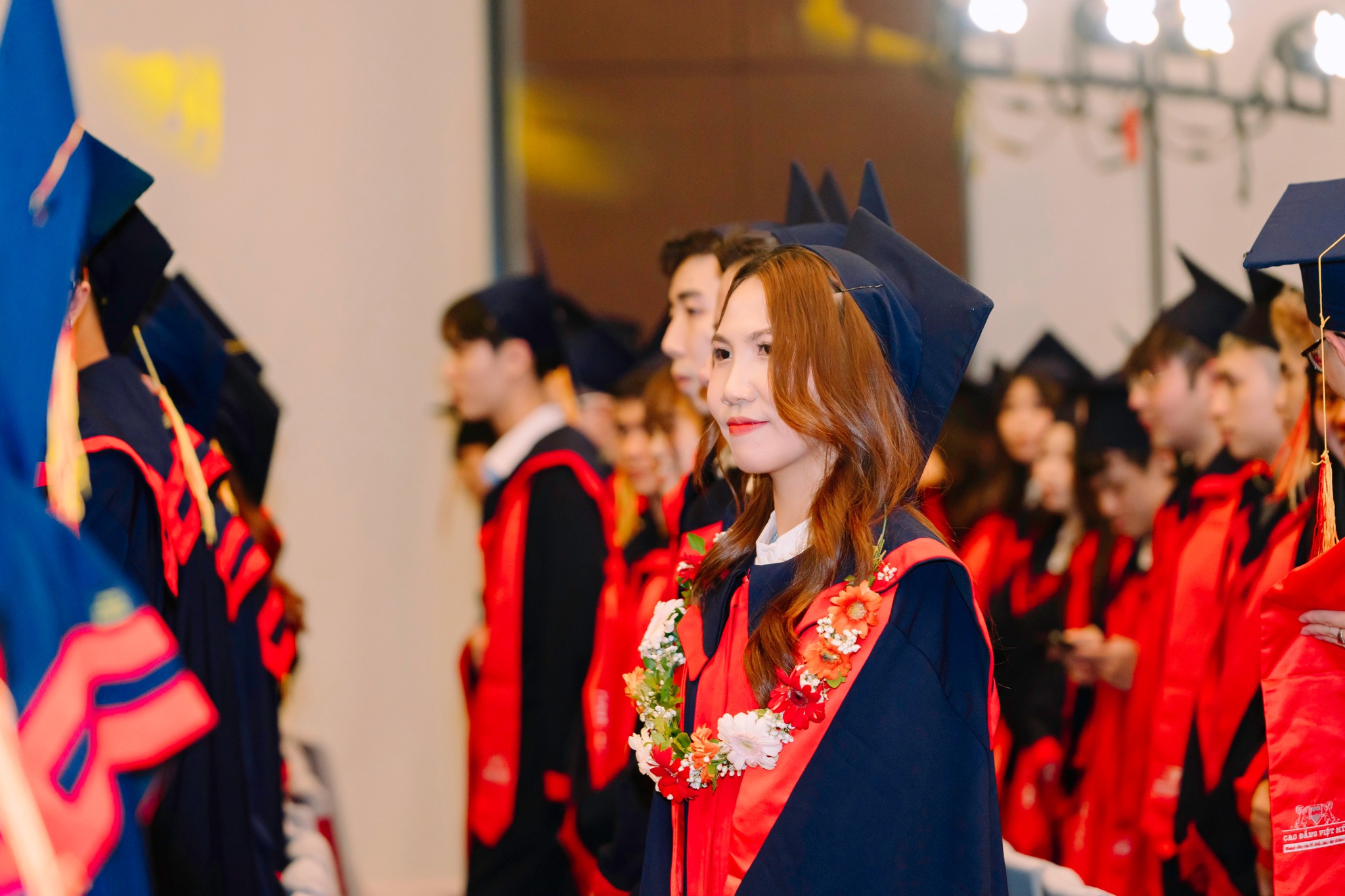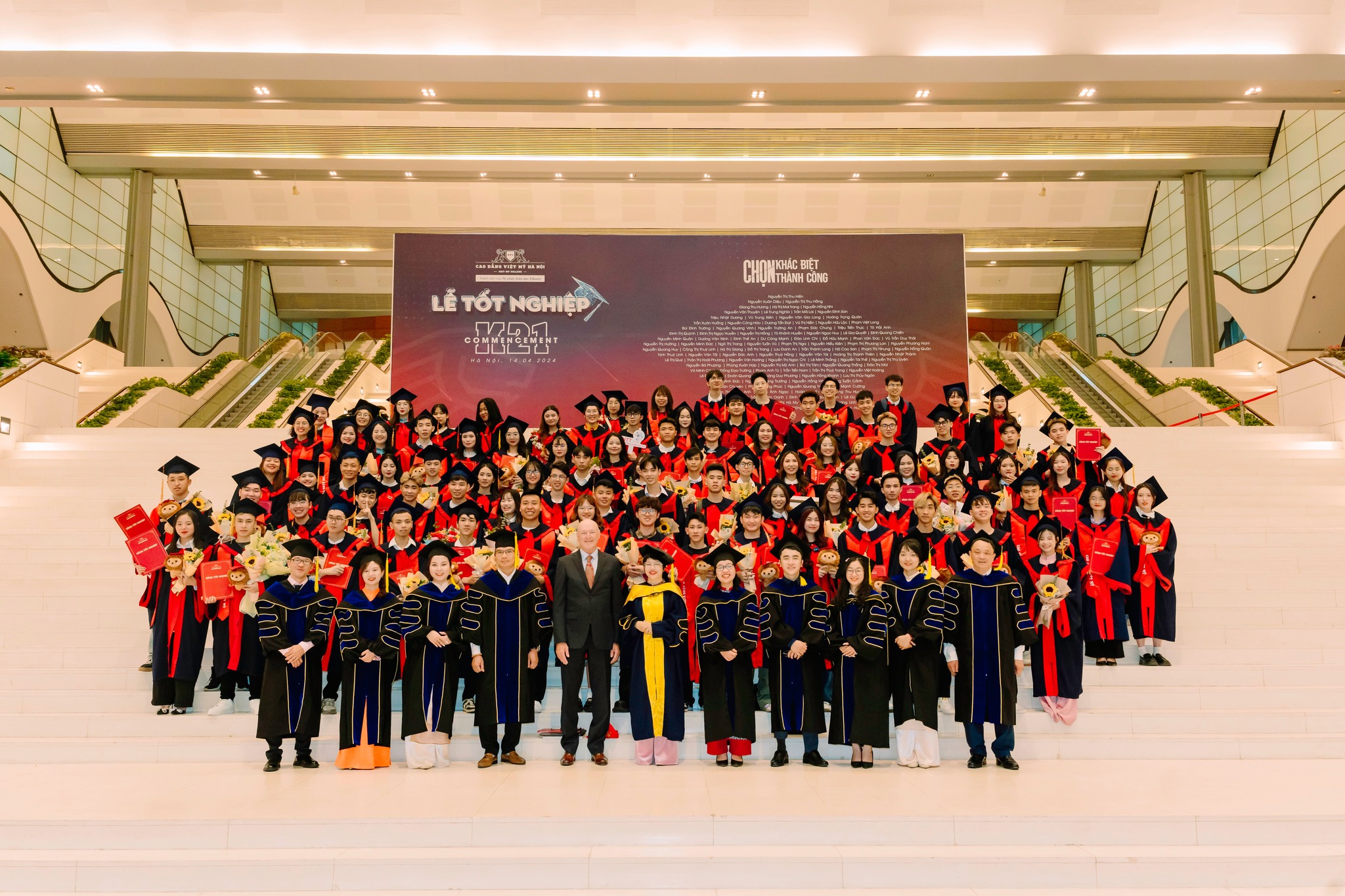 Hội trường Lễ Tốt nghiệp Cao đẳng Việt Mỹ Hà Nội ngập tràn không khí hân hoan và sự háo hức của hàng trăm sinh viên và gia đình, khi họ cùng nhau chứng kiến khoảnh khắc đánh dấu bước ngoặt quan trọng trong cuộc đời: Ngày Tốt nghiệp của các em K21.