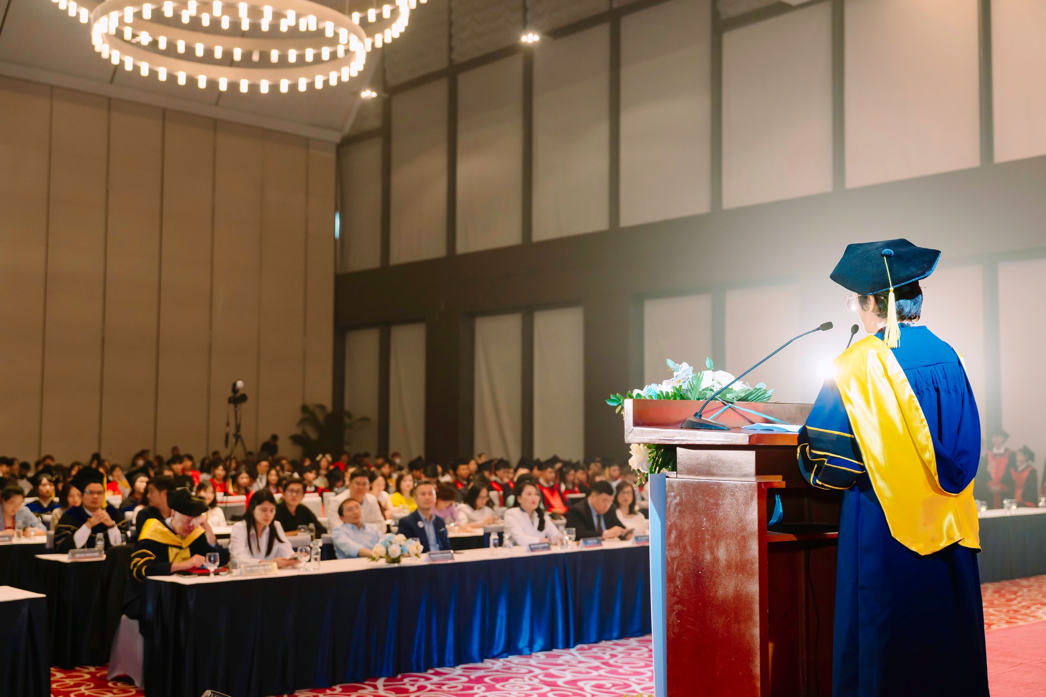 Các vị khách mời danh dự bao gồm đại diện Tập đoàn Giáo dục EQuest, phía lãnh đạo các đơn vị đối tác, khách mời, và cựu sinh viên của trường, đã có mặt để chia sẻ niềm vui và thành công với các sinh viên.