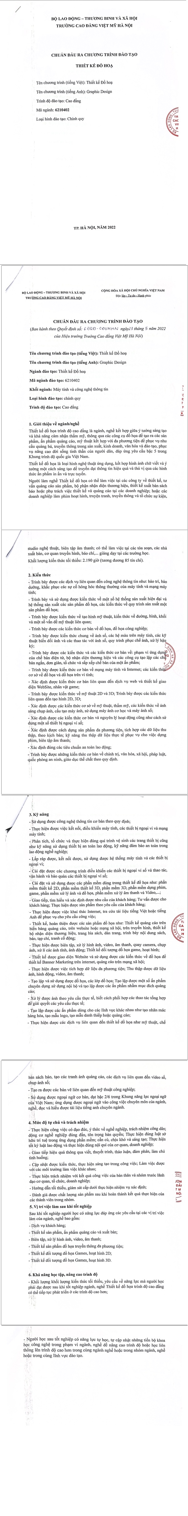QĐ chuẩn đầu ra chuyên ngành thiết kế đồ họa cao đẳng Việt Mỹ Hà Nội 2022